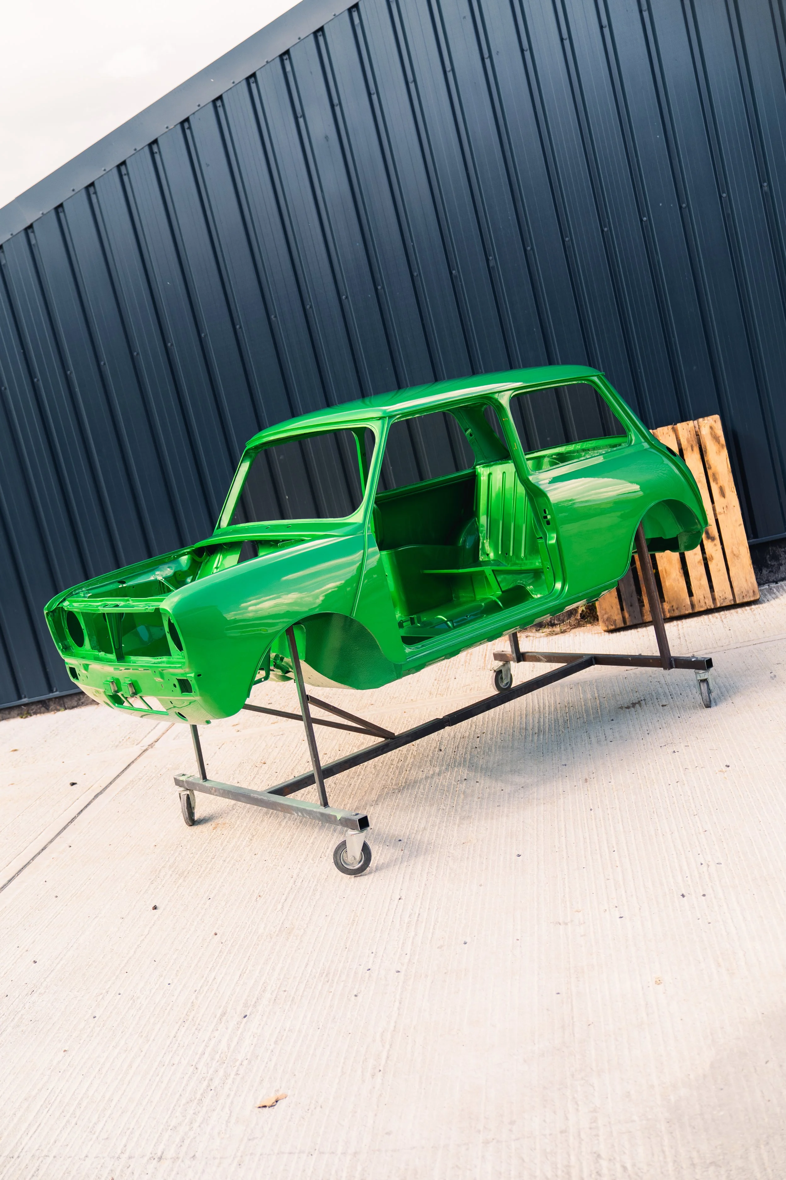 This Mini Clubman underwent a full concours-level restoration, executed with absolute attention to originality and craftsmanship. The project began with a complete teardown and assessment, followed by the replacement of the roof skin to ensure perfect structure, alignment, and authenticity.